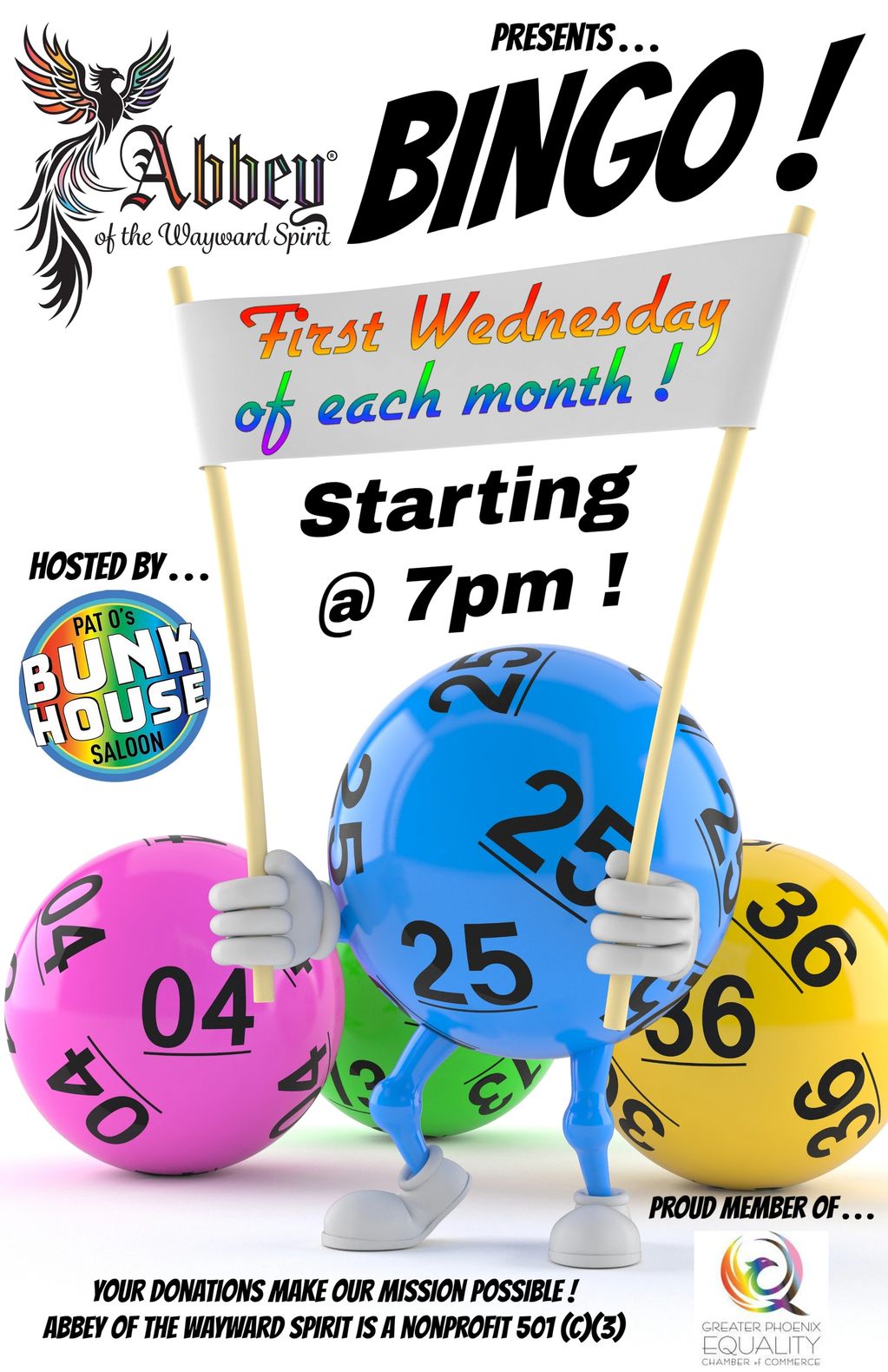 Come join Abbey of the Wayward Spirit for our monthly BINGO night. Bingo is FREE to play, but we are always accepting donations.